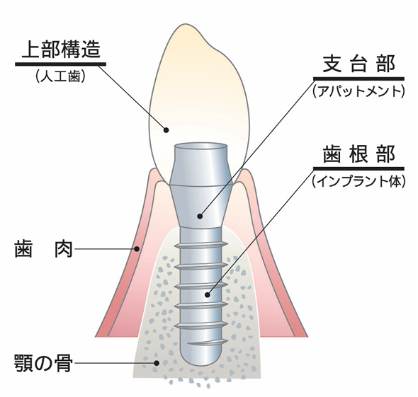 第2の永久歯とも言われています。歯根に使われるチタンは、生体適合性がよく、骨によく結合します。